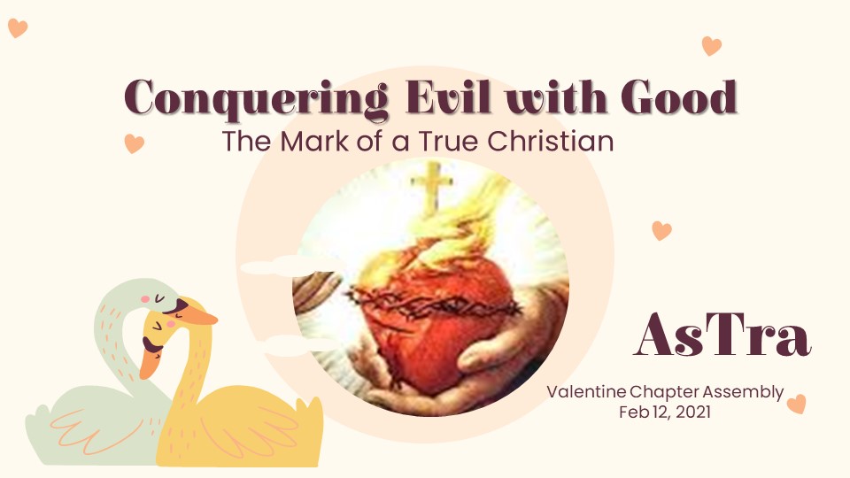 On the 2nd week of every month, the Asheville-Triad Chapter (AsTra) gathers from different households for chapter assemblies conducted online on Zoom. The theme for the month of February was “Conquering Evil with Good: The Mark of a True Christian”. Elder Greg Tan gave a short exhortation on choosing to live in love and not in anger. Uly Espadero, Astra’s PFO coordinator and household leader shared his personal experience in choosing to love rather than to hate a person who has wronged him and his family.